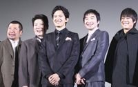 夏目漱石役を演じた桂は、「撮影をしている時は、“世界のナベアツ”でした。師匠から“三度”という名前をいただきまして。三度の飯が食えるように、そして放送作家、芸人、そして“三度目”の挑戦としての意味が込められています。サンドウィッチマンと被るので、気軽に“サンディー”と呼んで」と、改めて襲名の挨拶。宮沢賢治役を豪快に演じるコバヤシは、「ミヤケンは春画という、今でいうエロ本を集めていた。僕も意外とAVとか好きなんで」と共通点を告白。周りから「全然意外じゃないわ!」と突っ込まれながら、「僕の魅力が詰まった映画。帰ったらシャワーを浴びてください。それくらい僕の全てを浴びせかけます(笑)!」とアピールした。