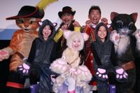 2004年に『シュレック2』でスクリーンに初登場した、長ぐつをはいたネコことプス。『シュレック2』以降、プスの声を務め、8年の年月を経て、遂に主役の座を射止めた竹中は「主役だと出番が多いから恥ずかしかったね。主役と聞いた時は『俺で良いのかよ!?』と思ったよ! 焦ったぜ! (プスの)若い頃の話だっていうから、小栗(旬)くんとかに代わるんじゃないか、おろされるんじゃないかと思ったけど、俺で安心したよ!」と満面の笑みを見せた。本作で声優に初挑戦した勝俣は、「急にこんな大きな役がくるとは思ってなかったので、アフレコ収録が始まってもドッキリだと思った」と不信感を抱いていたようだが、勝俣の声優に竹中は、「初めてとは思えないほど上手いんだ」と太鼓判を押した。ふたりは約15年前にドラマ共演して以来の共演となったが、竹中の印象を勝俣は「その当時からずっとふざけていて、変わってない。あいかわらず子供です」と明かすと、竹中は「失敬だな。一生懸命役作りするタイプなのに」と笑いながら訂正した。本作の魅力を「一緒に(スクリーンに)入ってしまう3D」(竹中)、「プスの色気を感じてほしい。映画を見るんじゃなくて冒険に参加してほしい」(勝俣)と紹介。