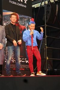 貞子のハグに子供たちも大喜び! スパイダーマン、アイアンマン、仮面ライダーらがチラシ配りで一致団結