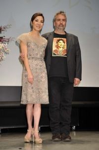 「スーチー女史に会った時、私たちはタイでの撮影をほとんど終えていたの。面白かったのは、私が彼女の家に近づいた時、不気味な感じがしたの。なぜならそのゲートをくぐった時、『私は昨日ここにいた』って感じたから。私たちはそれと全く同じセットを作っていたの。私は階段を上がりながら、『何てこと。私の部屋じゃないわ。いったいどうなってるの?』って感じだった。そして彼女を見た時、自分がとてもよく知っていると思っている、自分がこの4年間、一緒に過ごした人が目の前に突然現れたの。そして彼女は手を広げて、私を強く抱き締めてくれたわ。そして彼女がとても痩せていると感じた。でも一瞬たりとも、この女性はとても壊れそうで、今にも倒れそうだとは感じなかった。そこには力とオーラが感じられたの。彼女は座ったわ。彼女はとてもスマートだった。素晴らしいユーモアのセンスの持ち主で、すぐに相手をリラックスさせてくれるの。彼女はよく笑うし。彼女に対して私が予想していたことと違ったことは、彼女がとても素早く動くということね。彼女にはものすごいエネルギーがあって、禅的な感じがあるの。彼女は部屋の中を宙に浮いた感じで進むの(笑)。彼女をつかまえて座らせることはできないわ。でも私たちが彼女のエネルギーを感じたり、一緒にいることでいろんなこと理解することが、彼女には必要なの。それが分かるの。だから実に素晴らしかった。私は彼女をしばらく見つめ、彼女は私の腕をつかんでいたわ。私たちは映画のことは全く話さなかった。私たちの両方で、そういったことは意識していたことだったの。なぜなら私たちは、万が一にも彼女を危険に晒すことはしたくなかったから。彼らが、『何でそういった情報を渡し、軍部についてあんな悪い言い方をしたんだ』ってならないようにしたの。彼女が今までにやった全てのインタビューを見ると、彼女はいつも彼らにとてもよくしてもらっていると語っているわ。自宅軟禁されている間ずっと。だから信じられない立場にいるの。私が『私たちがこうやってここに一緒に座っていたことは、いつかみんなに知られるでしょうね』と言ったら、彼女は『これは家族の訪問よ』って言ったわ。私は自分の弟と一緒で、彼女はキム(スーチー女史の次男)と一緒だったけど。そして彼女は『これはとてもナイスな家族の訪問なの。そういうことなのよ』って言ったわ」