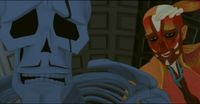 「一見、グロテスクなキャラですが、映像を見たら、面白い、面白い。『頼むからやらせてくれ、絶対他の奴に渡すな!』って思いました。声優が見る映像はもちろんセリフがない状態なんですけど、表情が瞬き一つから細かくて、生き生きとしているし、画がよく動いていて、声優としては『こういうのほしい!』っていう感じ。どんな声を出すか、見た瞬間に閃きましたね。キャラクターの動きに乗せられるんですよ。たとえば、僕が大好きな場面は、相棒で骨格標本のゴスと一緒に旧校舎に行く場面。実はビビっているキュンが、ゴスに『お前、行ってこい』って言う時の表情が、映像なのに、よっぽどうまい俳優じゃないとできないっていう芝居なんですよ。思うに、良い作品って『こういう声を出しなさい』っていうのは全部決められているんですよね。声優はそれを理解して、声を当てはめているだけ」。