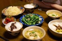 つやつやでふっくら、熱々の水餃子、石垣島産の野菜たっぷりのお惣菜の数々、つるんとしたのどごしの沖縄そばなど、ついついお腹が鳴ってしまいそうな美味しい料理が次々に登場する。しかも、この料理を実際に作ったのは、本作のモデルとなった辺銀夫婦なのだ。石垣島で辺銀食堂を営むふたりは、大の料理好きで、結婚当初は料理当番を争うこともあったそう。撮影時は、辺銀夫婦が調理はもちろん、食材から食器の選択、俳優への料理指導も担当し、魅力的なシーンの数々を彩っている。