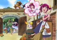 世界の絵本が集まる「世界の絵本大博覧会」を訪れたみゆきらが、不思議な少女に誘われ、絵本の世界を訪れるというのが今回の物語。そこは様々なおとぎ話が一緒くたになった世界で、みゆきたちがシンデレラ、一寸法師、孫悟空、浦島太郎、桃太郎といったキャラクターに変身した姿を披露するのだ。