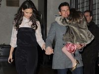 「6歳のスリは、先週末、家からケイティの職場であるブロードウェイの劇場に向かう母親と一緒に、地下鉄で移動しました。スリは、初めて見る光景に興味津々のようでした」と、関係者が語っており、ブルー系のワンピースに紫のカーディガン、タイツ、キャメル色のブーツを履いて、ピンク色の花の髪飾りをつけたスリとケイティの写真がデイリー・メール紙に掲載されている。