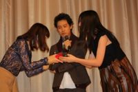 最後に、 三吉彩花がサプライズの手作りクッキーを3人にプレゼント。三吉は麻生、大泉に感謝の言葉を語った後、監督への手紙の中で「納得できないこともありましたが、私は過去を振り返りません。失敗を次に活かしたいと思います」と言うと、大泉が「初日で、過去の失敗って言われても」と突っ込み、会場はまた爆笑の渦となった。
