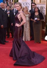 横並び的な存在の中で、米E!テレビの辛口ファッションコメンテーターらを唸らせたのは、『ハンガー・ゲーム』(12)で歌曲賞にノミネートされていたテイラー・スウィフトだ。これまでのテイラーは、あどけない少女のイメージだったが、シンプルなダナ・キャランアトリエのプラム色のトランペット型のドレスを身にまとったテイラーは、「大人の女性に成長した。自分でまとめた髪型はプロに任せた方が良いが、ドロップ型のイヤリングにボールドカラーのリップとメイクもパーフェクト」と評価も高く、「セクシーな映画スターの誕生!」とまで言わしめた。