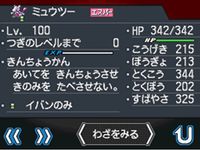 そんななか、今回発表されたレベル100のミュウツーは“とくこう(超能力系の技の強さ)”と“すばやさ”の値が300超えという、全ポケモンのなかでも1、2を争う高さになっている。また「サイコブレイク」や「れいとうビーム」の他、攻撃とともに相手を混乱させることができる「ぼうふう」(通常では覚えることのできない技!)も習得しているので、驚異的なスピードと破壊力で相手を翻弄するバトルスタイルが楽しめそう!