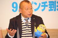 『怪盗グルーの月泥棒』(10)の続編、『怪盗グルーのミニオン危機一発』(9月公開)の吹替えキャスト発表会見が、4月4日にザ・ペニンシュラ東京で開催。3年ぶりに再タッグを組んだ怪盗グルー役の笑福亭鶴瓶と、アグネス役の芦田愛菜、そして新キャラクター・ルーシー役の中島美嘉が登壇。中島はグルーと恋に落ちる役どころということで「おかあさん役になるかもしれないような年になったことがショックです。もう30なので」と苦笑いしながら、初のアフレコへの意気込みを語った。