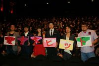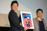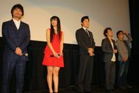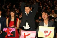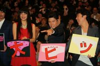 『HK変態仮面』の初日舞台挨拶に登壇した鈴木亮平と清水富美加