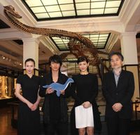 第9回「このミステリーがすごい!」大賞に輝いた、乾緑郎の小説の映画化『リアル 完全なる首長竜の日』(6月1日公開)の完成披露会見が、4月23日に国立科学博物館で開催。佐藤健、綾瀬はるか、中谷美紀、黒沢清監督が登壇した。首長竜がドラマの鍵を握っていることから、博物館の首長竜の前で会見が行われたこの日。主演の佐藤は「映画にはもっと大きいのが出てきます」、綾瀬は「首長竜の首が長~いところが好き!」と話し、会場を笑わせた。