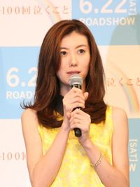 中村航の恋愛小説を実写映画化した『100回泣くこと』(6月22日公開)の完成披露試写会が5月15日、都内で行われ、出演者の大倉忠義、桐谷美玲、ともさかりえ、大杉漣と、廣木隆一監督が登壇した。この日は、翌日に28歳の誕生日を迎える大倉へ、100個のカップケーキで作ったバースデーケーキとハンカチで作られた花束がサプライズでプレゼントされた。集まったファン500人から祝福の声が飛ぶと、はにかんだ表情を見せ、「28歳最初のこの映画がヒットしてほしい。で、ヒットしたら、もう28歳、何でもいいかなと思ってます……何でもいいことはないかな」とマイペースなコメントでファンをわかせた。