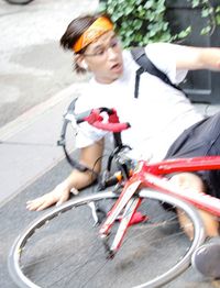 しかし、ニコールの写真を撮るためにハイヤーを追いかけて、歩道を自転車で猛スピードで走ってきたカール・ウーというパパラッチが、急ブレーキをかけてコントロールを失い転倒。車から降りてホテルのドアに向かう途中のニコールに激突し、ニコールは、左側のひざ下が床にぴったりつくような形で倒れこみ、両手を地面についたものの右足のハイヒールは完全に脱げてしまうというハプニングが起こった。