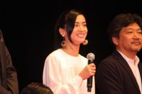 福山扮する主人公の妻役を演じた尾野は、「私も福山さんのファンでございまして。若かりし頃から大好きで。まさか、こういう映画で一緒になれるとは。幸せな時間を過ごさせていただきました」と声をうわずらせながら告白し、会場は大爆笑。真木は「私は3人とも共演経験がありましたが、今まで絡んできた役と違い、すごく新鮮で楽しめました」と語った。また、リリーは演じた父親役をほめられると「『ビッグダディ』を毎回ビデオに録ってた甲斐がありました」と言って笑いを取った。