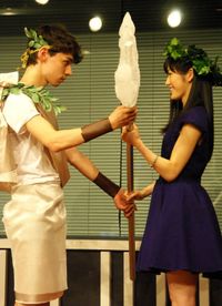 ギリシャ神話の神と人間との間に生まれたパーシー・ジャクソンが、世界を滅亡の危機から救うために冒険を繰り広げるスペクタクル・アドベンチャー『パーシー・ジャクソンとオリンポスの神々 魔の海』(11月1日公開)。本作の日本語吹替版の声優に選ばれたAKB48の渡辺麻友と、船橋市非公認のご当地キャラ・ふなっしーが、9月25日に都内のスタジオでアフレコ会見を行った。