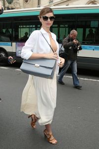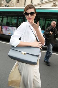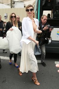 先月ニューヨークで、はっきりと乳首が見て取れるノーブラドレス姿で街に渋滞を巻き起こしたミランダ・カーが、今度は乳房が半分露出したノーブラのドレスでパリに出現して渋滞を巻き起こし、投げキッスをする余裕まで見せている。
