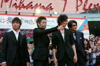 定刻通り、レッドカーペット入口に大型リムジンが到着するや、割れんばかりの歓声が響き、待ちに待った4人が品川ヒロシを先頭に、成宮、水嶋、哀川と続く。品川はここでも監督の本領発揮とばかりにハンディカムを手に、成宮、水嶋、哀川の様子を撮影していた。