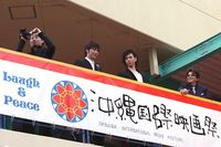 朝8:30からという早い時間にもかかわらず、レッドカーペット周辺には詰めかけた沖縄っ子でスシ詰め状態。一番良い場所をキープしていた女性に話を聞いたところ、朝5時に来たとのこと。それもそのはず、レッドカーペットを歩くのは、若手人気二枚目俳優の成宮寛貴と水嶋ヒロ、監督の品川ヒロシ、そして急遽参戦が決まった“Vシネのアニキ”こと哀川翔の4人なのだ。