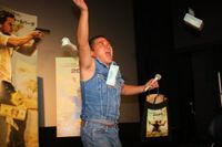 最後に、「お金に汚くない!」とドル札を会場にばら撒くというパフォーマンスを見せたスギちゃん。でも、MCから「お金、女、組織、相棒、信じられるのどれは?」と質問されると「お金!」と即答し、最後まで笑いを取った。【取材・文/山崎伸子】
