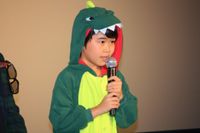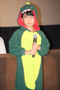 恐竜が大好きだと言う鈴木は、映像を見て「2Dでもすごいと思ったけど、3Dで見ると、触りたくなっちゃいました」と興奮しながらコメント。また、「福井の恐竜博物館へも行って、化石発掘体験をしたり、展示を見たりしました。僕にとって今年は恐竜イヤーです。子供大使になれて、うれしいです」と元気にコメント。