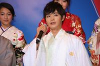 通称“はがない”として人気を誇るライトノベルの実写映画化『僕は友達が少ない』(2月1日公開)の完成披露イベントと舞台挨拶が、1月8日に新宿バルト9で開催。瀬戸康史、北乃きい、大谷澪、久保田紗友、山田萌々香、栗原類、主題歌を担当したケラケラ、及川拓郎監督が、全員晴れ着で登壇。映画のヒットを込めて、高さ3mの巨大凧も登場した。瀬戸は、北乃の着物姿について尋ねられ「素晴らしいです」を横を見ずに答えると、北乃は「観てない」と苦笑いした。