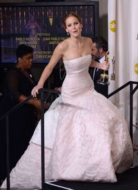 昨年のアカデミー賞で主演女優賞を受賞した際、登壇時にドレスの裾を踏んで転倒し、メディアに大騒ぎされたジェニファー・ローレンスが、W誌のインタビューで転んだ理由を明かしている。本人によれば、晴れの舞台でよろけて転んでしまったのは、ケーキのことを考えていたからだという。