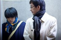 池松壮亮が暗いニート役に。エレベーターでサラリーマン(滝藤)と遭遇? [c]2014映画「愛の渦」製作委員会