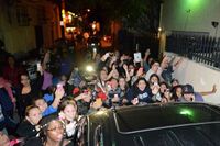 ファンに取り囲まれるジャスティン 写真:SPLASH/アフロ