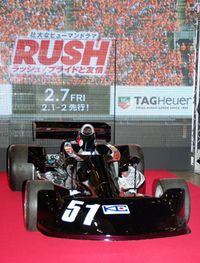 伝説的な2人のF1レーサーの闘いと友情を描く『ラッシュ プライドと友情』(2月7日公開)。1月30日、本作のジャパンプレミアがTOHOシネマズ日劇3で開催され、ロン・ハワード監督、主演のクリス・ヘムズワース、ダニエル・ブリュールが舞台挨拶に登場。ヘムズワースは集まった観客に手を振り「僕たちが本当に楽しんで作った、誇れる作品。日本のお客さんも気に入ってくれると信じています!」と映画をアピールした。