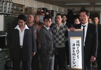 玲二に捜査の指令をする酒見(吹越満)や赤桐(遠藤憲一)、福澄(皆川猿時)らが「土竜の唄」を披露。作詞は宮藤官九郎 [c]2014 フジテレビジョン 小学館 ジェイ・ストーム 東宝 OLM [c]高橋のぼる・小学館
