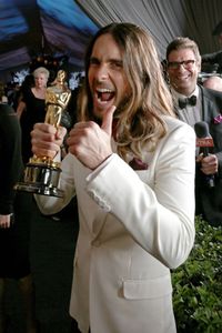 授賞式の会場に、母親と、自身もボーカルとして活躍するバンド「サーティー・セカンズ・トゥー・マーズ」の、メンバーであり兄のシャノンを連れて来たジャレッドは、『ダラス・バイヤーズクラブ』での助演男優賞受賞のスピーチで、夢を見続けることを応援してくれた母親に感謝の意を述べると共に、政情不安が続いているウクライナとベネズエラに触れ、「この番組を見ている世界中の夢見る人々に送ります。ウクライナとベネズエラのように、夢を実現させるのが難しい状況にいるみなさんのことを思っています。どうか夢を見続けてください。そして諦めないでください」と語りかけた。