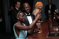 エレンの演出でピザがデリバリーされた際、エレンがファレル・ウィリアムスの帽子を持ってブラッド・ピットらにチップ代を請求して回ったが、ブラッドの前に座っていたルピタにもチップ代を請求すると、ルピタはクラッチバッグを開けて、お金の代わりに水色のリップクリームを差し出した。