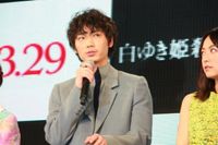 ベストセラー作家・湊かなえの同名小説を映画化した『白ゆき姫殺人事件』(3月29日公開)で、女性Twitterユーザーを招いたトークイベントが、3月24日に六本木のニコファーレで開催。井上真央、綾野剛、菜々緒、小野恵令奈、ダンカン、中村義洋監督が登壇。冒頭、いきなり綾野剛が「すみません。トイレに行って良いですか?」と恐縮しながら中座。戻ってきた綾野に井上は「絶対に見出しになるよ。“綾野剛、トイレにGO”って」と突っ込むと、綾野は「すみません。本当に恥ずかしい」と平謝りをした。