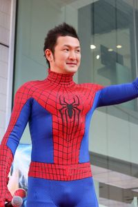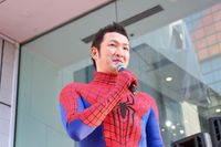 スパイダーマンスーツの中村獅童が銀座に登場!「夜のパトロールに行く時に着ています(笑)」(画像6/16)