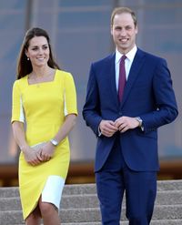 オーストラリア訪問の1日目は、ロクサンダイリンチックのビビットな黄色のドレスを着ていたキャサリン妃。2日目にブルーマウンテンを訪問した際に着ていたのは、白とブルーのプリント柄の膝上丈のドレスだ。