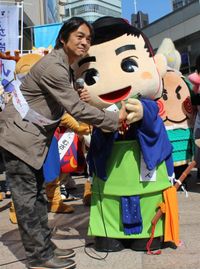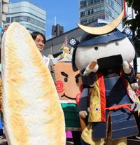 ご当地キャラがズラリと参勤交代!気温上がるなか、さのまるくん、せんとくんらが映画をアピール