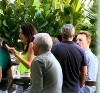 U2のボノなどが出席した婚約パーティは、母の日の12日に、ジョージのビジネスパートナーであるランディ・ガーバーが所有するマリブのカフェハバナで開催された。「ジョージは紺のポロシャツにジーンズ、アマルは胸にピンクのリボンが付いた黄緑色のTシャツに紺のジャケット、花柄のホットパンツ姿というラフな出で立ちで、とてもリラックスしている様子でした。この日は、母の日を祝うお客さんで一杯でした。来店者たちには予期せぬサプライズで、最高の母の日になったようです」と目撃者がE!ニュースに語っている。