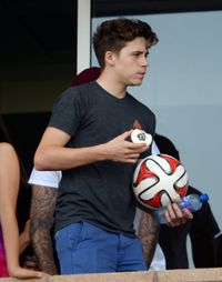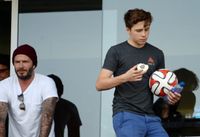 ベッカム家の息子たちの中では一番地味で体育会系とも言われていたブルックリンだが、今春、男性誌Man About Townの表紙モデルを務めてからはすっかり垢抜けた印象で、実は若い頃のパパに一番似ているという説もある。家族のいないところで女の子とふたりっきりでいる姿をパパラッチされたのは今回が初めてだが、健康的なスケボー・デートをしている様子が子供らしくて爽やかだと好感を集めている。