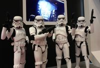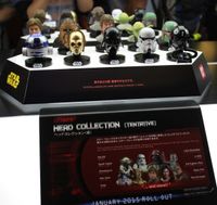 「今までに登場していたキャラクターはもちろんのこと、今後発表が予定されている作品についても、幅広いカテゴリーで商品化を予定している」とラインアップに自信をのぞかせた上野社長。またこの日は、ダース・ベイダーのテーマ曲に合わせて、銀河帝国軍の機動歩兵・ストームトルーパーも登場。上野社長とフォトセッションに応じるなど、商品のPRに積極的に参加していた。