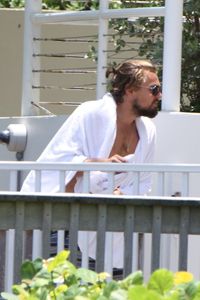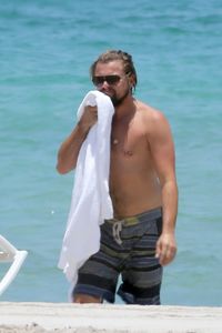 まだ40歳前とは思えないほどお腹のあたりがたぷついてしまっているレオの水着姿は、マイアミのビーチで撮影されたもの。レオはスーパーモデルの恋人トニ・ガーンと共に休暇を楽しんでいるが、太ったことに加えてヒゲを伸ばしてサングラスをかけているせいもあり、遠目には浜辺にジャック・ニコルソンがいるように見える。立っている写真はそうでもないが、座っている写真では腹部の肉がかなり垂れ下がっており、この数か月でかなり体重が増えたのではないかと思わせる。