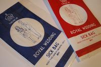 リディアはすでに、11年4月29日のふたりのご成婚を記念して、イギリスの郵便ポストの赤色とイギリス王室を象徴するロイヤルブルーの2種類のエチケット袋をデザインしている。リディアのサインに加え、「Royal Wedding SICK BAG」と書かれたエチケット袋には、ふたりの似顔絵と王冠が描かれているほか、ふたりのアツアツムードで気分が悪い人や、ご成婚祝いでケンジントン宮殿前に集まった際に群衆の中で気分が悪くなるかもしれないというブラックユーモアを交えて、「4月29日にはこのバッグを持って行って」という意味の文字がプリントされている。