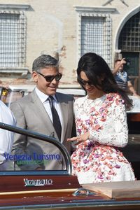 ジョージは、アルマーニのタキシードで挙式が行われたホテル入りする姿を公開しているが、アマルは前日に赤いドレスでバチェロレッテ・パーティを楽しんだ後、挙式翌日の28日午後2時50分ごろまで公の場に姿を見せておらず、ジョージの妻となって初のお披露目となる。