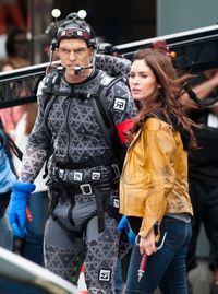 『ミュータント・タートルズ』撮影中、モーションアクターとミーガン 写真:SPLASH/アフロ