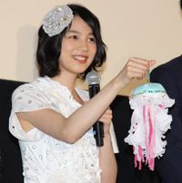 クラゲオタクの主人公・月海役を演じた能年。クラゲのドレスを手作りするシーンもあるが、現場でもキャスト陣によって「手芸部」が発足されたという。月海の部屋に飾られたクラゲのぬいぐるみも能年のお手製だそうで、ステージにそのぬいぐるみも登場。能年は「ボリューミーに作ったクラゲ。力作です」と胸を張った。さらに、川村監督が「少女時代の月海ちゃんがつけている髪飾りも能年さんが作ったもの。あまりにも可愛いので、ぜひ劇中で使わせて欲しかった」と能年のお手製アイテムについて明かしていた。
