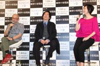 本作のテーマである“贖罪”について尋ねられた青山は「こんな生臭い話して良いのかな?」と気まずそうな表情で「『東京公園』(11)の前の4年間、仕事が流れて、収入がほぼ無く、その間、迷惑をかけました」と、とよたに謝罪。三上は笑いながらとよたに「頑張ったな」とねぎらうと、とよたは「頑張りました(笑)。芸術家を支えるというのはそういうことですので」と笑顔を見せた。