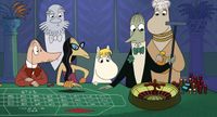 ムーミン谷を抜け出して、リゾート地のリビエラを訪れたムーミン一家。なぜか、高貴な人と勘違いされ、高級ホテルに泊まることになったりと、ムーミンパパとフローレンはすっかりイイ気分。なかでも、フローレンはこの煌びやかな世界に夢中になり過ぎて、心ここにあらず状態…。現地の男・クラークにナンパされて、その彼と食事を共にするなど、ボーイフレンドのムーミンはそっちのけだ。さらに、高額の水着が欲しい彼女は、お金を作るためにカジノで一儲けも企む。フローレンの色気とアグレッシブさには驚き!