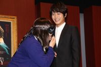 また、溝端は黒沢に「髪の毛がとってもきれいですね」とほめたが、黒沢は「ヅラです……」と告白し、会場は大爆笑。溝端は「すみません!」と大慌て。さらに溝端は黒沢について「とても女性らしさがある方。とっても乙女な心がある素晴らしい人」とほめちぎったが、黒沢は「うれしいです。ヅラなのは気づいてもらえなかったけど」と突っ込み、また、会場は爆笑の渦となった。