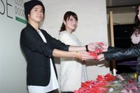 2014年9月に最終回を迎えた人気リアリティ番組「テラスハウス」の続きを記録した映画『テラスハウス クロージング・ドア』が、本日2月14日より公開。てっちゃんこと菅谷哲也と島袋聖南が、初日に来た観客にバレンタインフラワーをプレゼントするというグリーティングがTOHOシネマズ 六本木ヒルズをはじめ7劇場で開催された。菅谷は「これだけの人に来ていただき、感激しました」と喜びを語った。