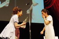 今回、松岡へトロフィーを渡したのは、昨年同賞を受賞し、オープニングでアクションを披露した武田梨奈。苦楽をともにした友人である2人は壇上で抱き合い、松岡は感動の涙を見せた。「梨奈と最初に共演した当時は、2人ともすっごい暇だったんです。でも今こうやって忙しくしている梨奈を見て、私もこのような賞をいただけるようになって、本当に幸せです」と涙ながらに語った。