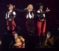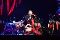 英国版グラミー賞と称されるブリット・アワード授賞式でのパフォーマンス中、セットから転がり落ちる動画が世界中で大きく報道されたマドンナ。本人はアルマーニのケープをきつく結び過ぎ、それがほどけないうちにダンサーからケープを引っ張られて転んだと説明している。