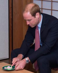 来日で茶の湯を楽しむウィリアム王子、薄毛は父方遺伝